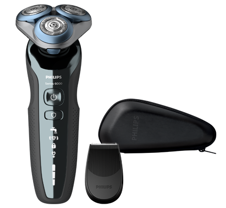 ContinueLa afeitadora S6000 de Philips incluye un recortador desmontable para arreglar el bigote y las patillas a la perfección y una funda de viaje.